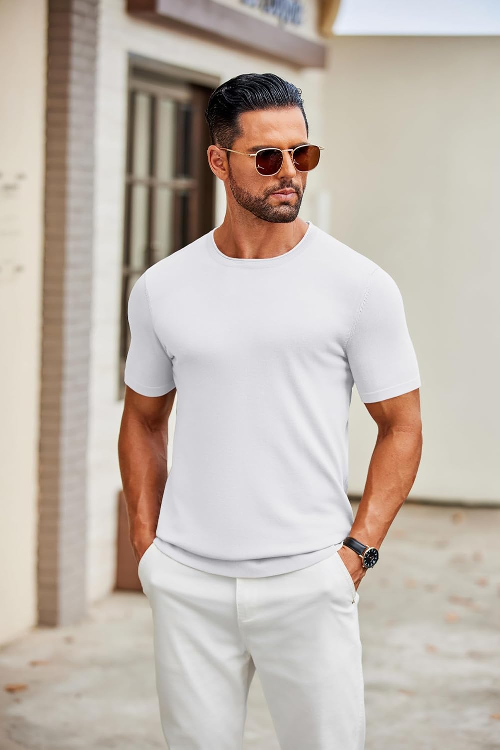 COOFANDY Mens Knit T-Shirts Casual Crewneck Short Sleeve Shirts Summer Tops Basic Pullover Tees