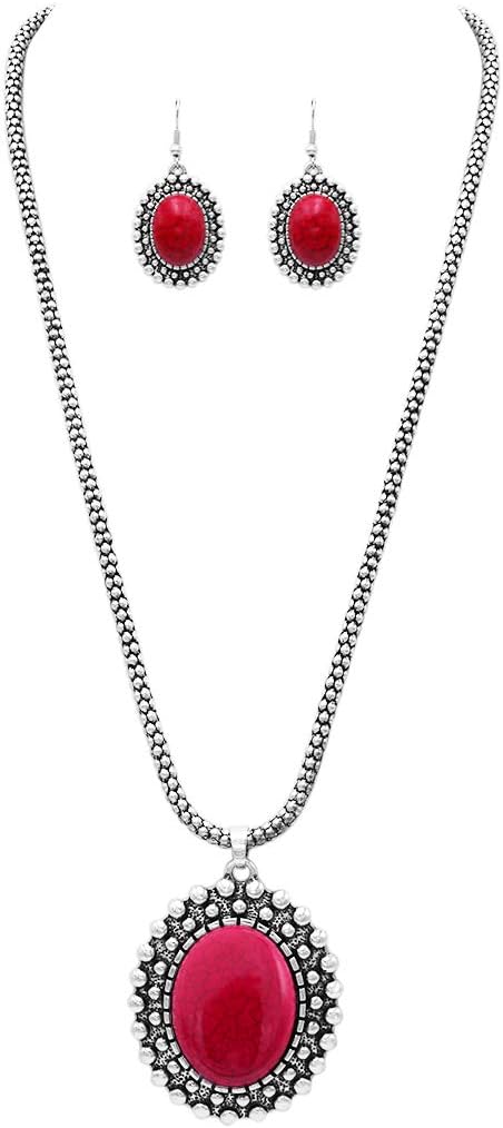 Rosemarie & Jubalee Women’s Western Style Silver Tone Concho Medallion with Natural Howlite Necklace Earrings Set, 26″+3″ Extension