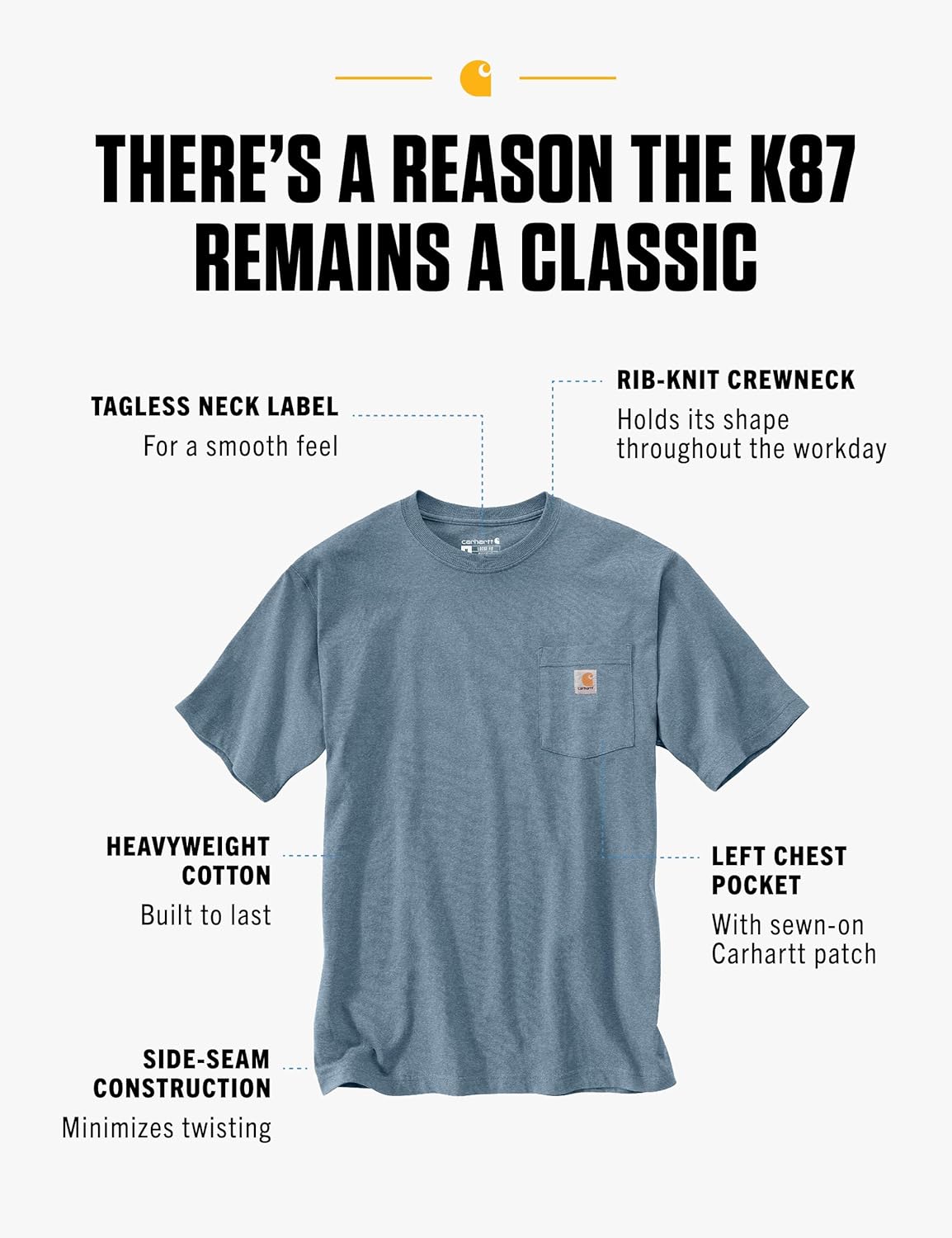 A workwear staple, this men’s pocket t-shirt is equal parts durable and comfortable. It has an original fit, Carhartt’s roomiest cut. The heavyweight fabric only gets softer with time.