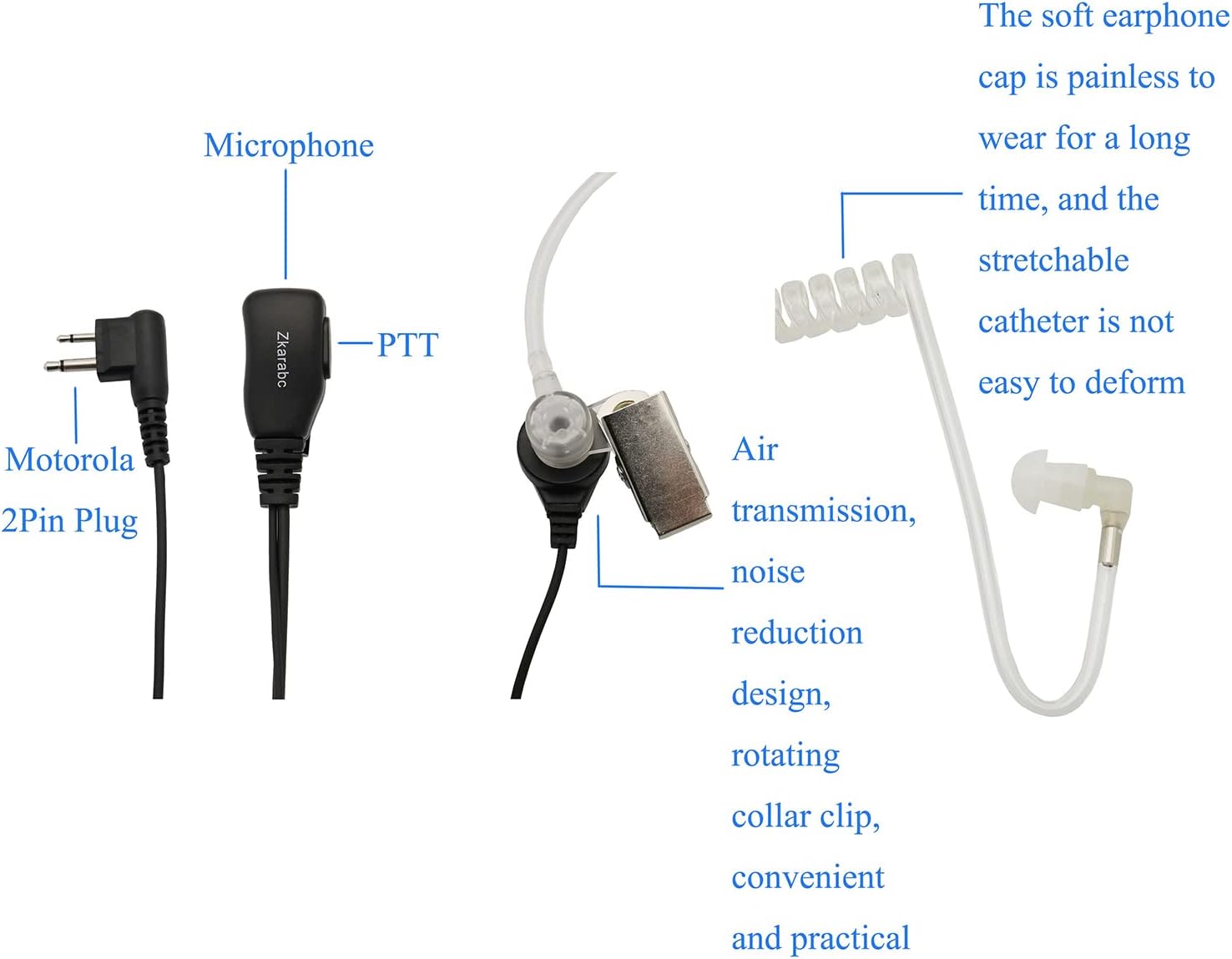 Walkie Talkies Earpiece with Mic 2 Pin Acoustic Tube Headset Compatible with Motorola CLS1410 CLS1110 BRP40 CP200 CP200D CP185 DTR650 RDU2020 RDU4100 RDU4160D RDU2080D RMU2040 RMU2080D (10 Pack)