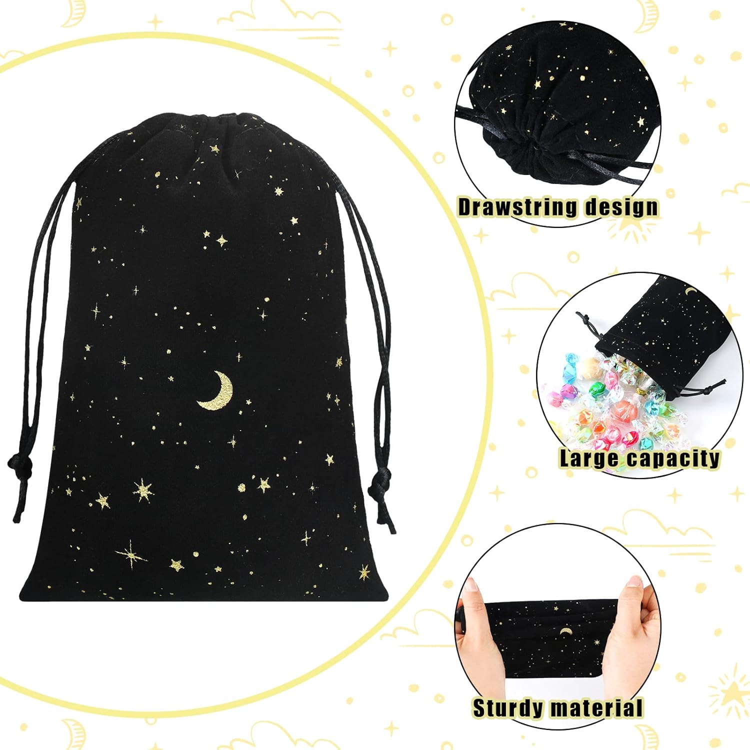 Hillban 30 Pcs 4 x 6 Inch Black Velvet Drawstrings Bags for Jewelry Moon Star Pouch with Drawstrings Ring Bags for Jewelry Gift Packaging Wedding Anniversary Christmas Eid Mubarak