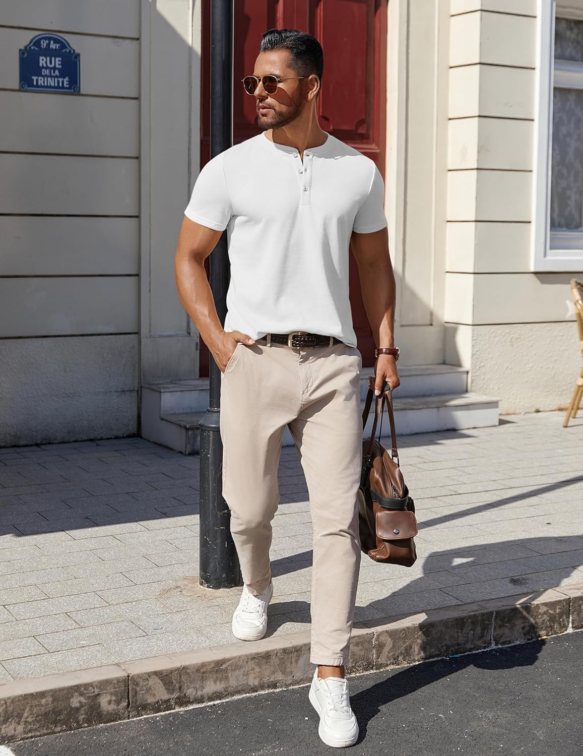 COOFANDY Mens Cotton Henley T-Shirts Short Sleeve Button Casual Basic Tees Work Shirts with Split Side
