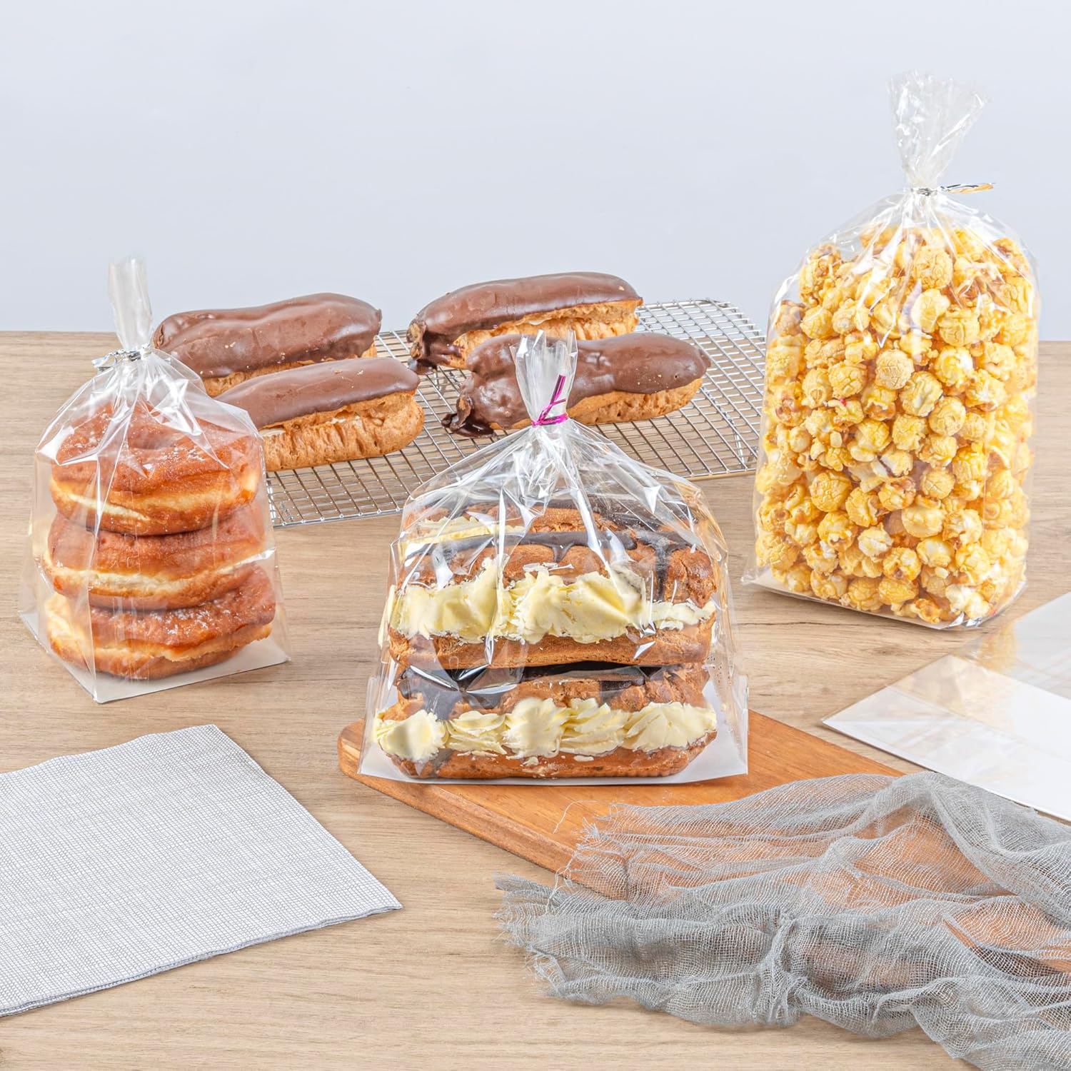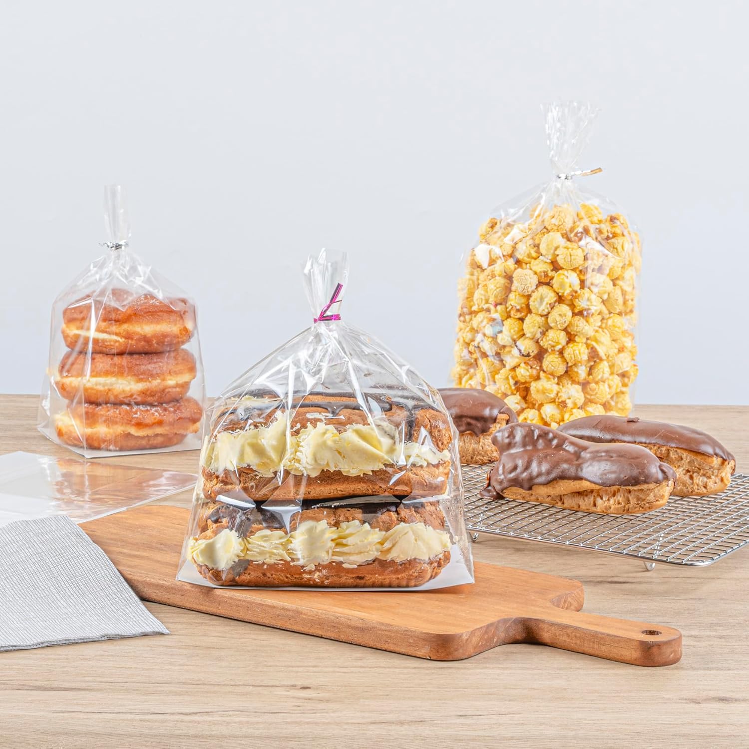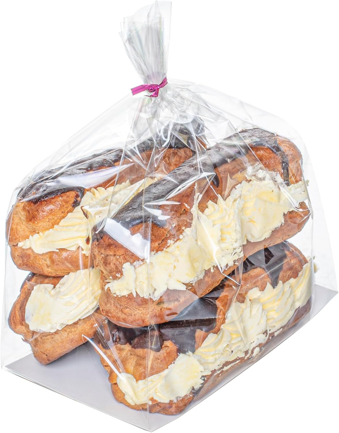 Perfectly package your bread rolls with our Bag Tek Clear Plastic Gusset Bags. With a crystal clear finish, these bread packaging bags showcase baked goods and confectionary to catch the eye of your customers. Made from premium plastic, these clear candy bags protect your delicious fare from dust and debris. These candy bags are heat-sealable to preserve the fresh taste of your mouthwatering treats. The included paper insert and flat, gusseted bottom of these heat seal cookie bags keep your wrapped food from slanting over while on your bakery’s or deli’s shelf. These sustainable clear plastic treat bags are disposable for simple and easy cleanup. To lock in the taste of cookies and muffins, seal these clear dessert bags with our impulse sealer (ASIN: B075S63C95 or B075S169JV). Measuring 7 inches long by 4 inches wide by 9 inches tall, these gusset plastic bags are sold in a 100 count box. Impulse sealer is available and sold separately.