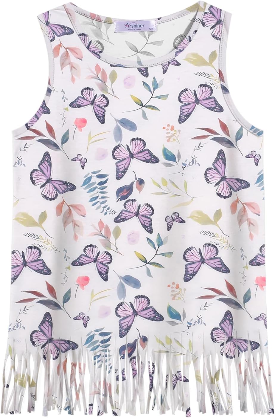 Arshiner Girls Summer Outfits Sleeveless Fringe Tank Top and Elastic Waist Pocketed Shorts Set Girl Clothes 6-14 Years