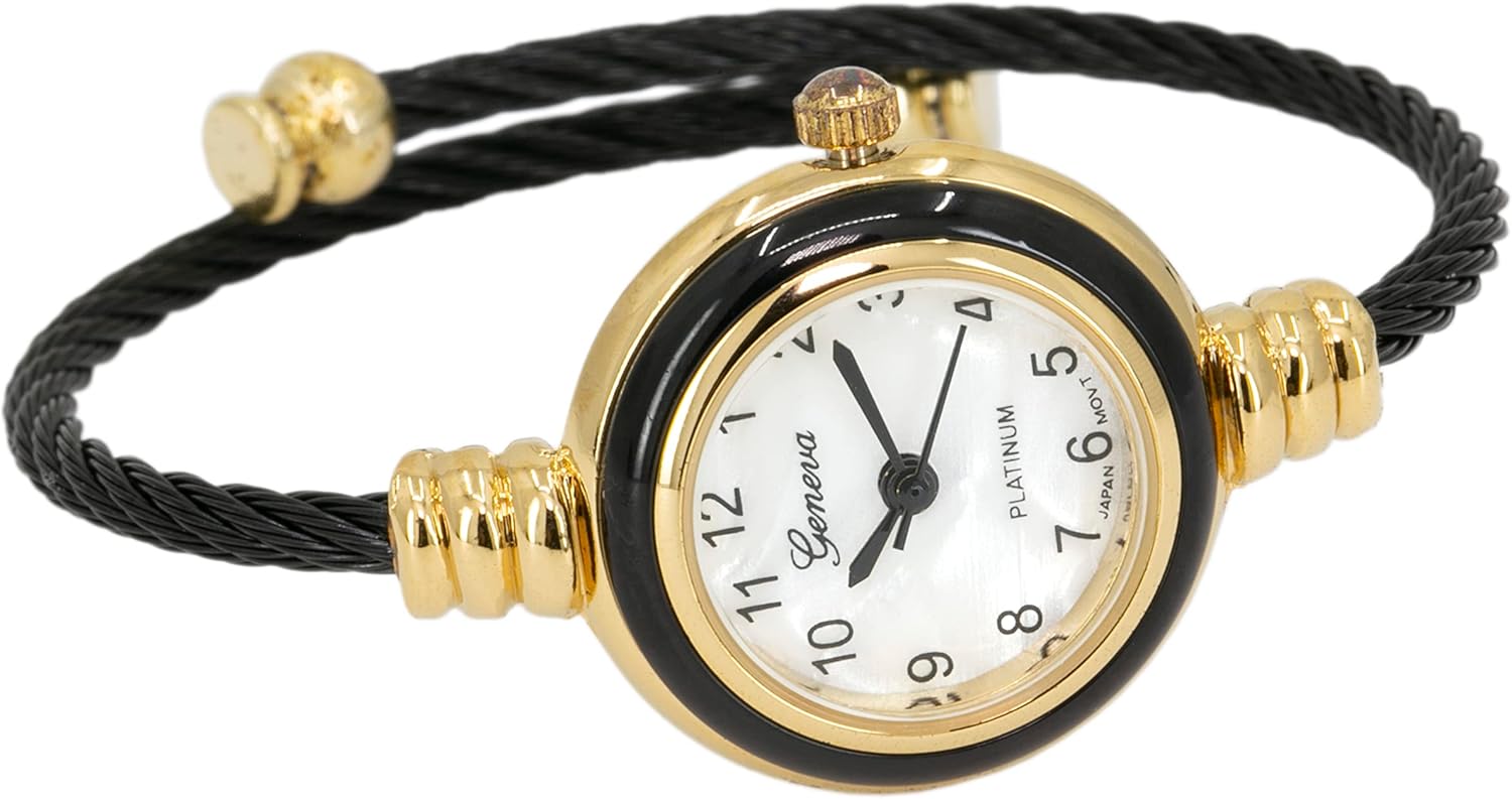 Blekon Collections Women’s Cuff Watch – Round Analog Display Arabic Numbers 23mm Case Wire Bracelet Watch for Women Elegant Cable Cuff Bangle Wrist Watch