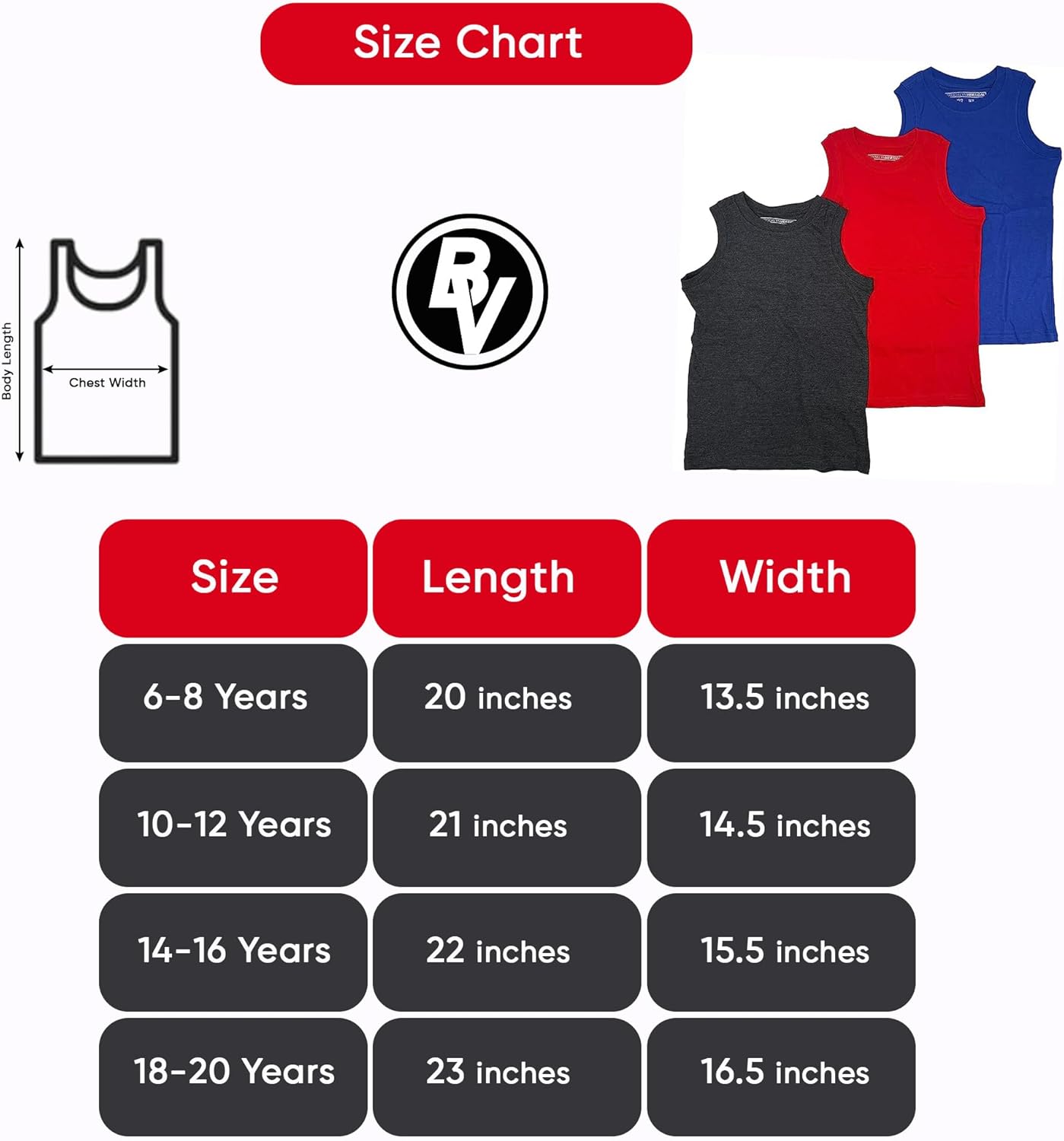 Be the first to review “BROOKLYN VERTICAL Boys 3 Pack Muscle Shirt Sleeveless Tee – Tagless Cotton Super Soft”