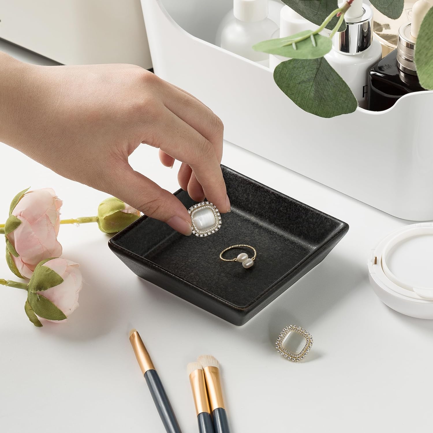 Ceramic Trinket Dish, Ring Tray, Decorative Jewelry Dish for Earrings Necklaces Watch Keys for Women (black square)
