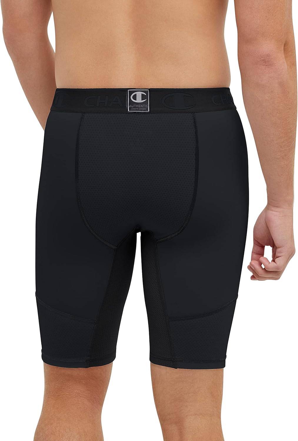 BUILT FOR THE GYM. These compression shorts for men work hard to keep everything right where it ought to be. They feature Champion’s Total Support Pouch™, which lifts and separates for maximum comfort – so you’ll spend less time adjusting and more time doing your favorite activities. Great for the athletic type, these men’s compression shorts wick away sweat and tame odors for a fresh and dry workout. These sports shorts have been zoned for ventilation, so you’ll stay cool in all the right places. Finished with a logo waistband and C patch at the hem.