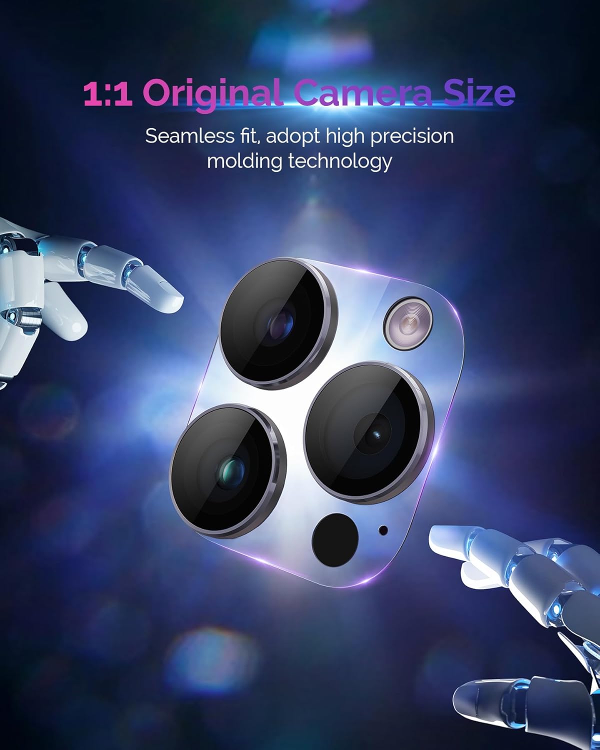 [Compatibility] – 3D one piece aluminum alloy ring, acrylic plate and 9H tempered glass designed camera lens protector only compatible for iPhone 16 Pro Max/ iPhone 16 Pro/ iPhone 14 Pro Max 6.7″ / iPhone 14 Pro 6.1″. (Not compatible for iPhone 15 Pro Max /15 Pro /16 Plus/ iPhone16/ 14 Plus/iPhone 14)