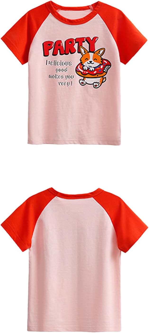 Dinosaur Printed Kids T-Shirt Color Patchwork Design Soft Cotton Clothing 6 Fun Animal Pattern Tops for Kids Ages 3-8