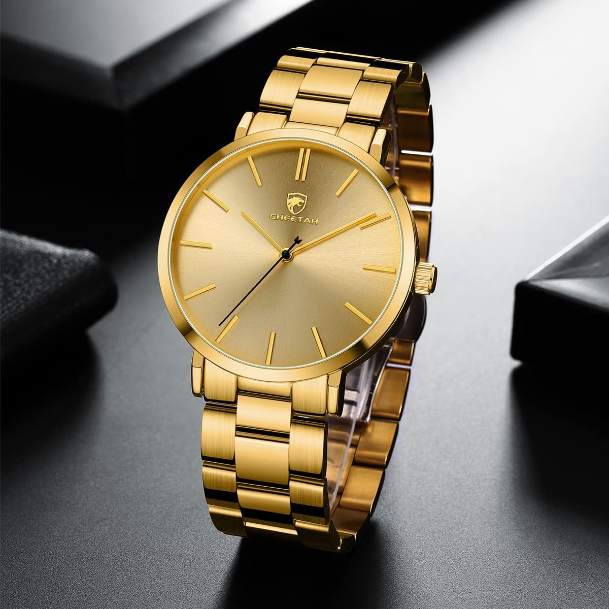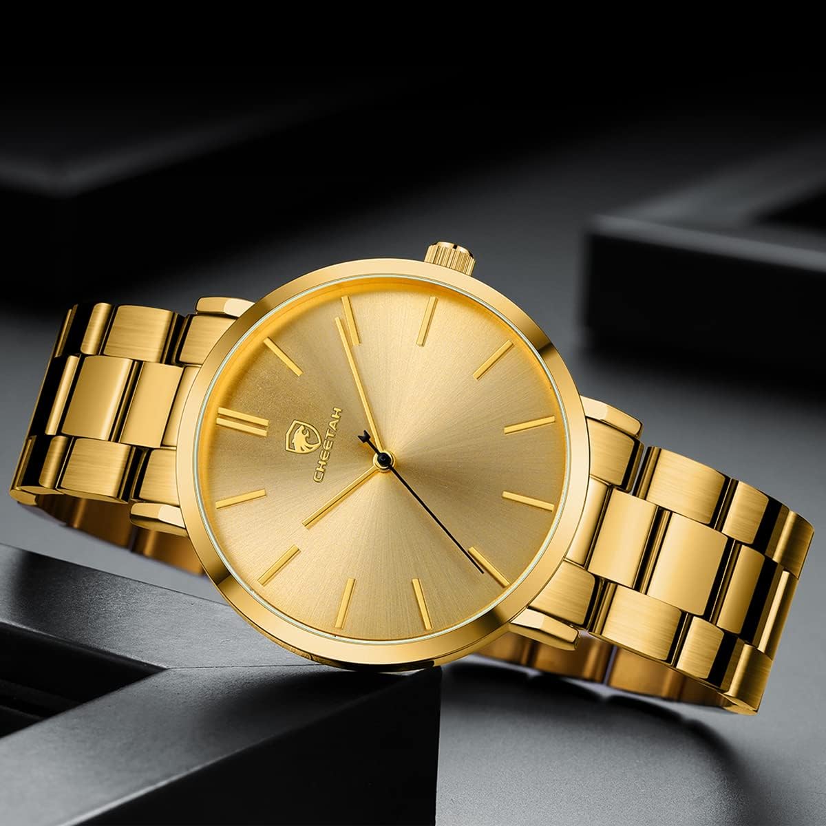 GOLDEN HOUR Men’s Watches Slim Minimalist Runway Plated Stainless Steel Quartz Analog Watch
