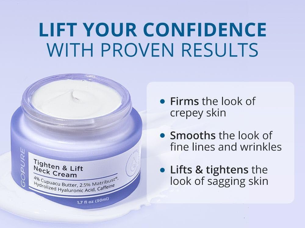 FIRM, LIFT, & TIGHTEN: Our goPure Neck Firming Cream is specially formulated to target and combat sagging skin on the neck and chest, providing a visibly firmer and more lifted appearance; giving the impression of wrinkle filler, even for deep wrinkles.