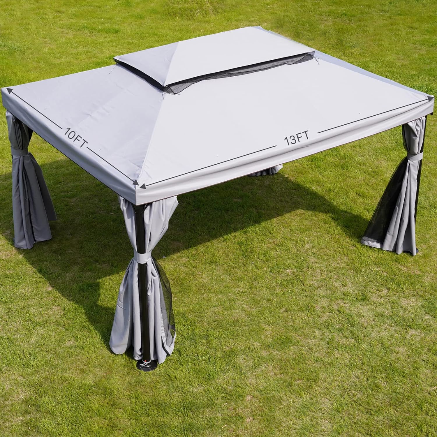 Grand Patio Replacement Canopy Top for 10×13 FT Outdoor Gazebo, Double Tiers PA Polyester Canopy Top Water-Resistant Anti-UV Shelter Sun Shade with Mesh Netting
