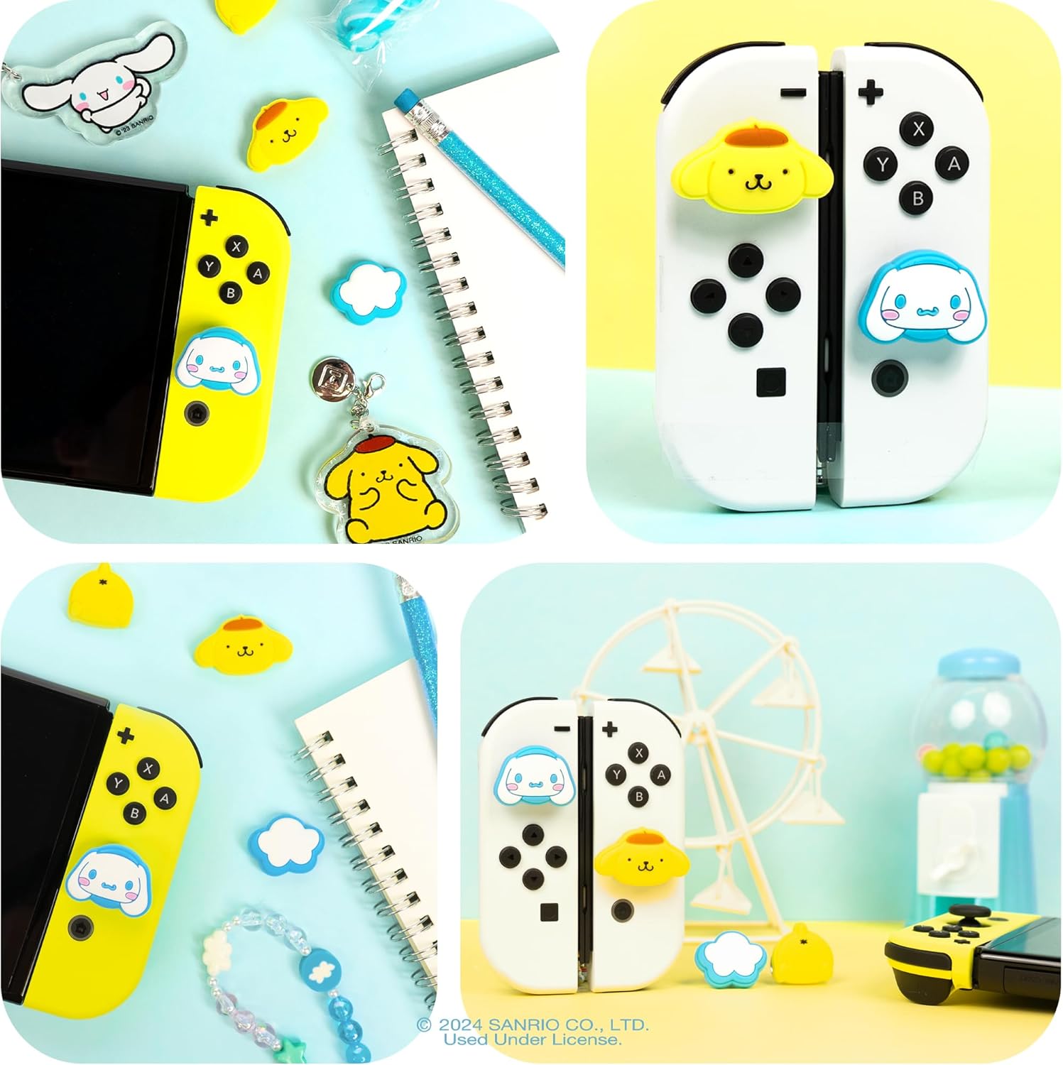 Hamee Hello Kitty and Friends Thumb Grips Compatible with Nintendo Switch OLED/Switch Lite, Character Analog Soft Anti-Slip Silicone Joystick Grip Cover Caps – Pompompurin and Cinnamoroll