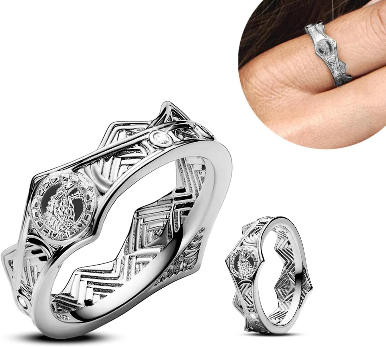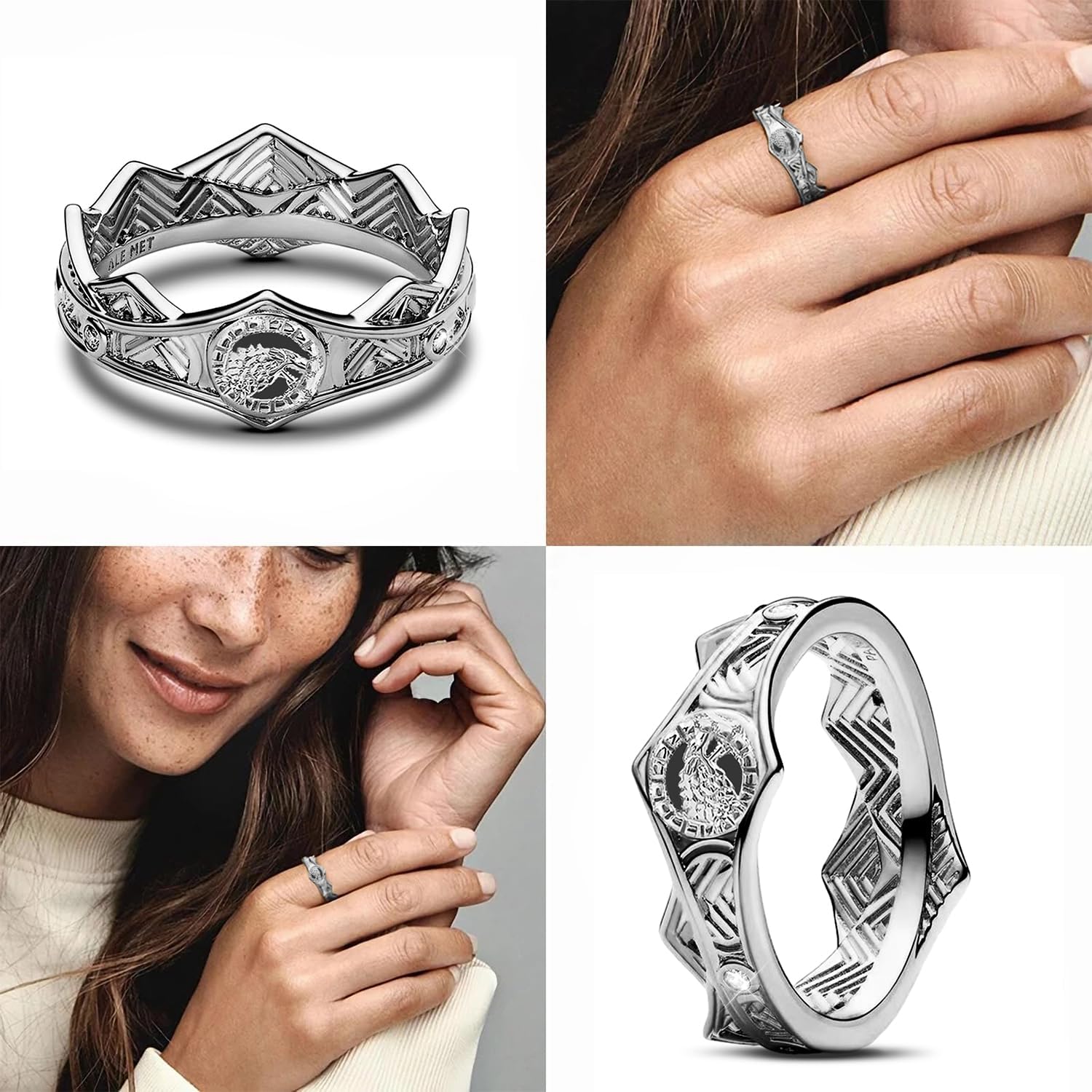House Stark Ring Thrones Series Jewelry Game, Daenerys Targaryen Jewelry Queen of Thrones, King Wolf Crown Ring for Men Women Game Movie Fans Collection or Gifts
