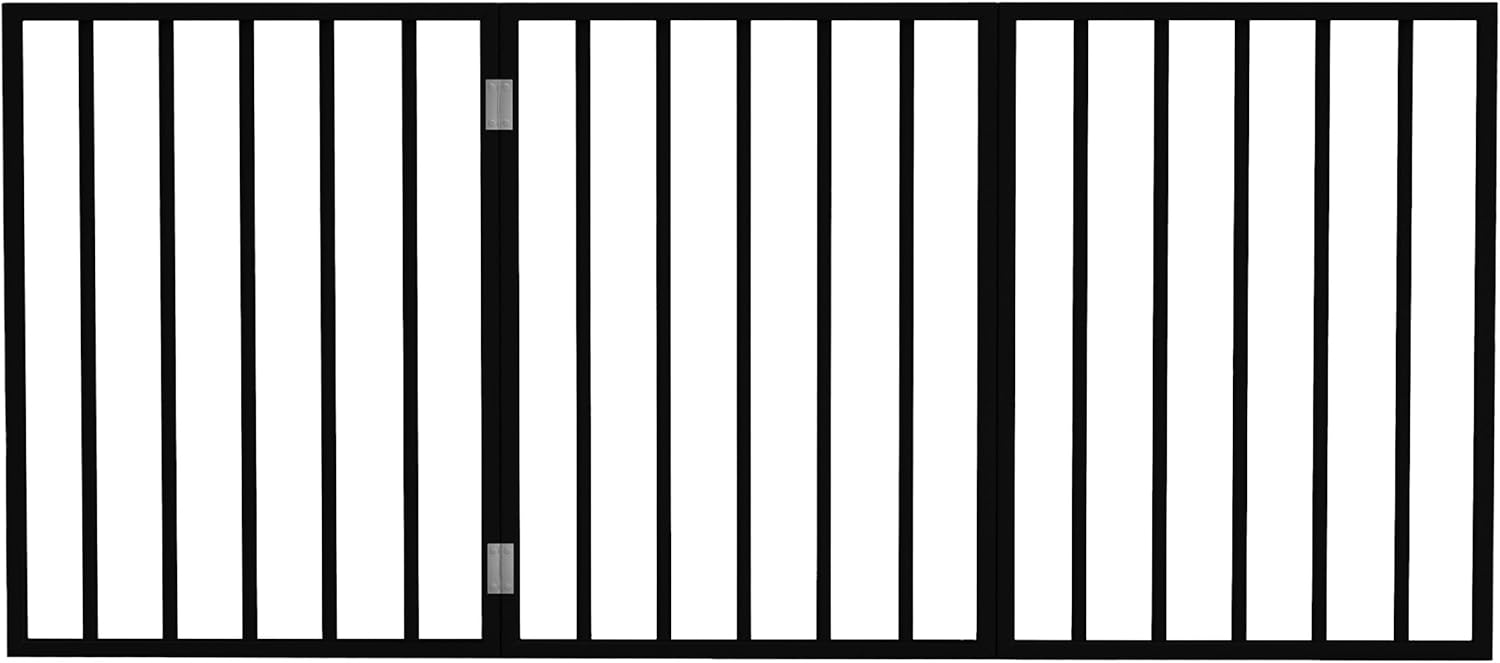 PRODUCT DETAILS – Materials: Wood and Metal. Dimensions: (L) 54″ x (W) 1″ x (H) 24″; Folded: (L) 18″ x (W) 3″ x (H) 24″. Recommended for Openings Measuring 33”-46” Wide. Door Gates for Pets Only. Color: Black.