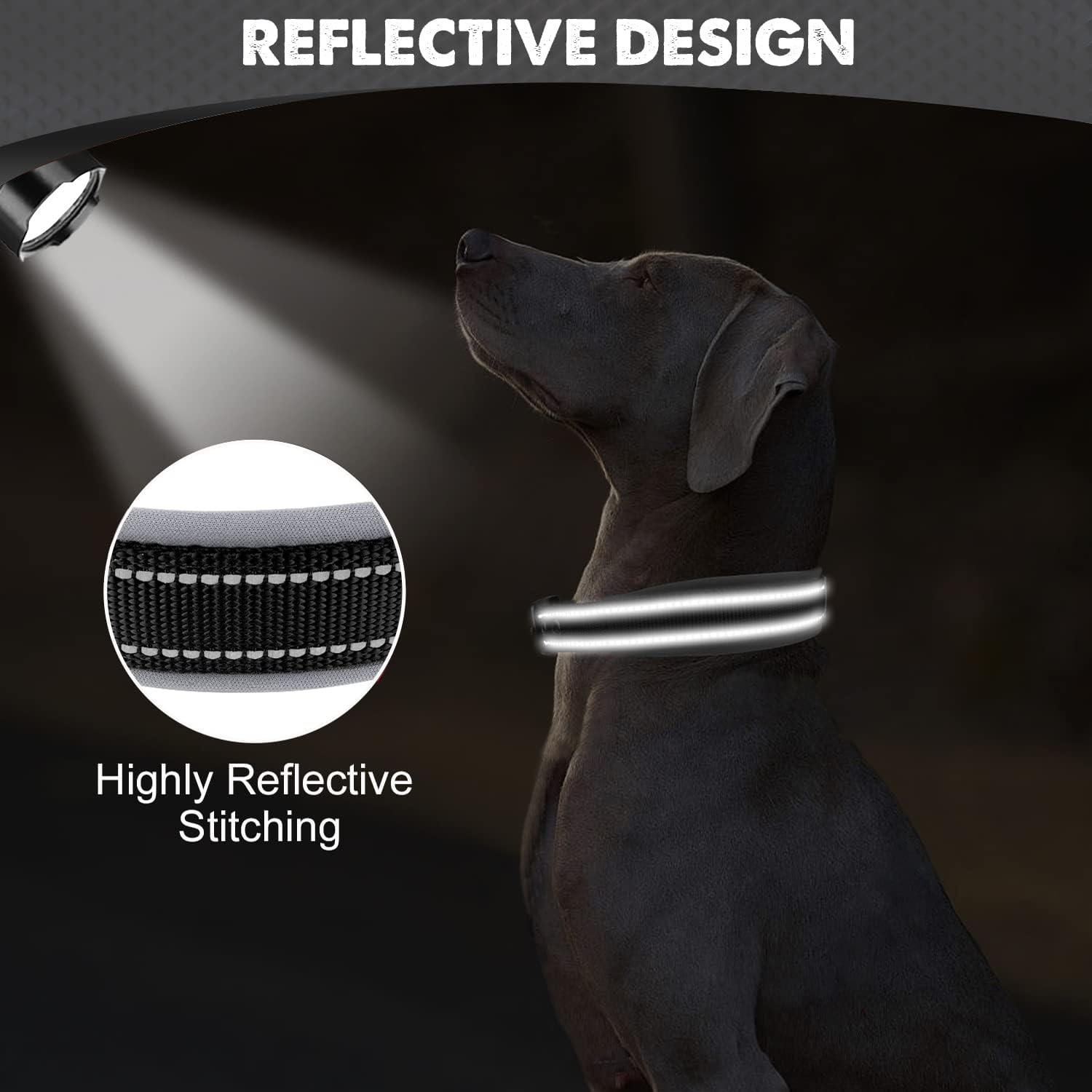 Double-Layer Webbing & Reflective Stitching: Highly reflective threads are woven around the collar for 360° visibility in the dark; Our large dog collar with two-ply construction for extra durability, works for Large & extra large dogs with strong pulling