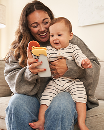 Flip the camera & grab baby attention for a selfie. Our lion rattle phone clip also works wonders for monthly milestone shoots!
