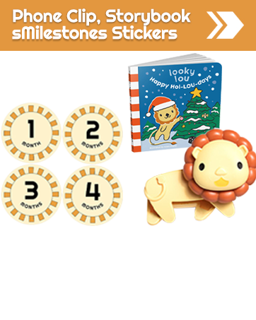 Celebrate your toddler journey with monthly milestone stickers, a charming baby book, and a handle phone clip that makes pics better!