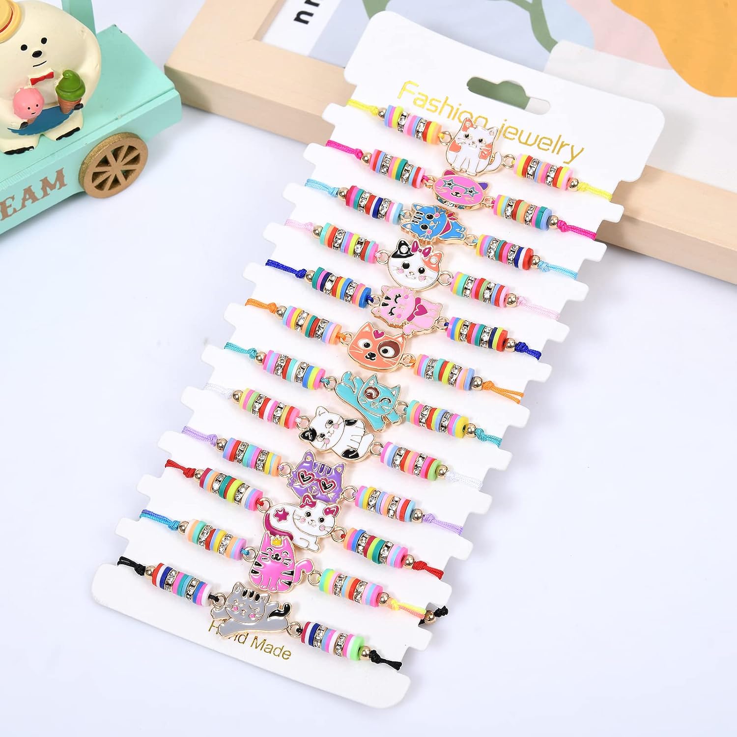 Lorfancy 12 Pcs Bracelets for Girls Kids Toddler Play Jewelry Cute Animal Cat Charm Bracelet Friendship Braided Woven Bracelets Adjustable Little Girls Dress Up Jewelry Gift