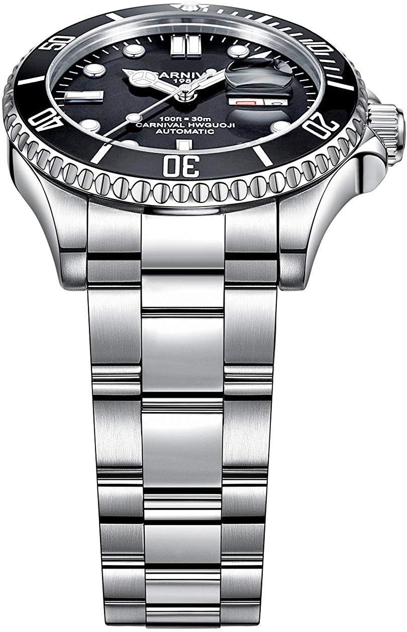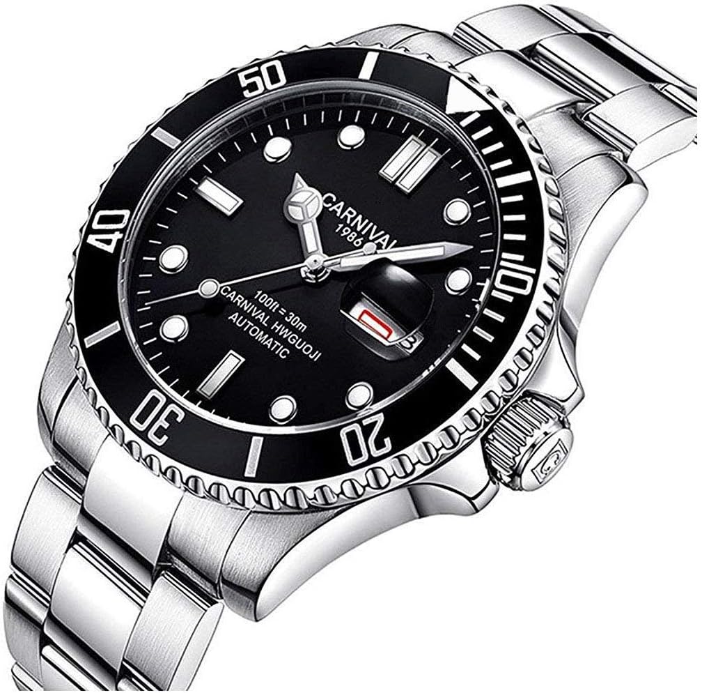 MASTOP Swiss Brand Luxury Luminous Waterproof Watch Mens Automatic Mechanical Wrist Watch Silver Stainless Steel (CA069-silver -Black)