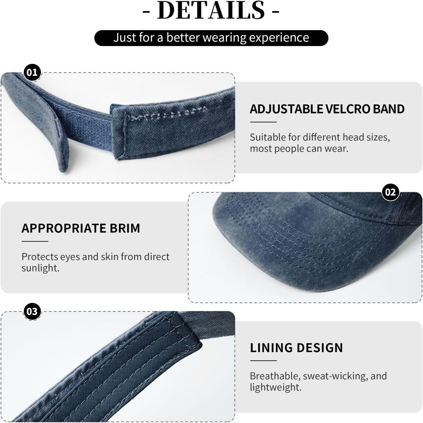 WIDE APPLICABILITY: The Inner Layer Of The Hat Is Equipped With A Sweatband, Men And Women For Outdoor Sports, Cycling, Fishing And Other Activities Can Be Carried Out To Absorb Sweat, Effectively Stop The Sweat Beads Slipping, But Also To Reduce The Risk Of Female Make-Up Removal, Through The Adjustment Of The Velcro Is Also Not Easy To Easily Blowing Mess.