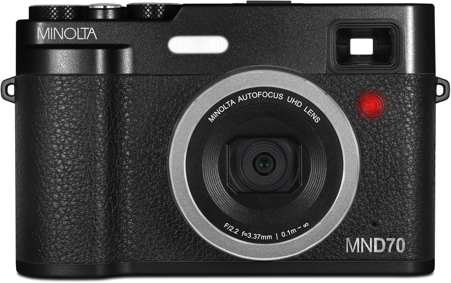 Minolta MND70 Retro 48 MP Autofocus Digital Camera with 5K Ultra HD Video, Rear Selfie Lens & WiFi, Black