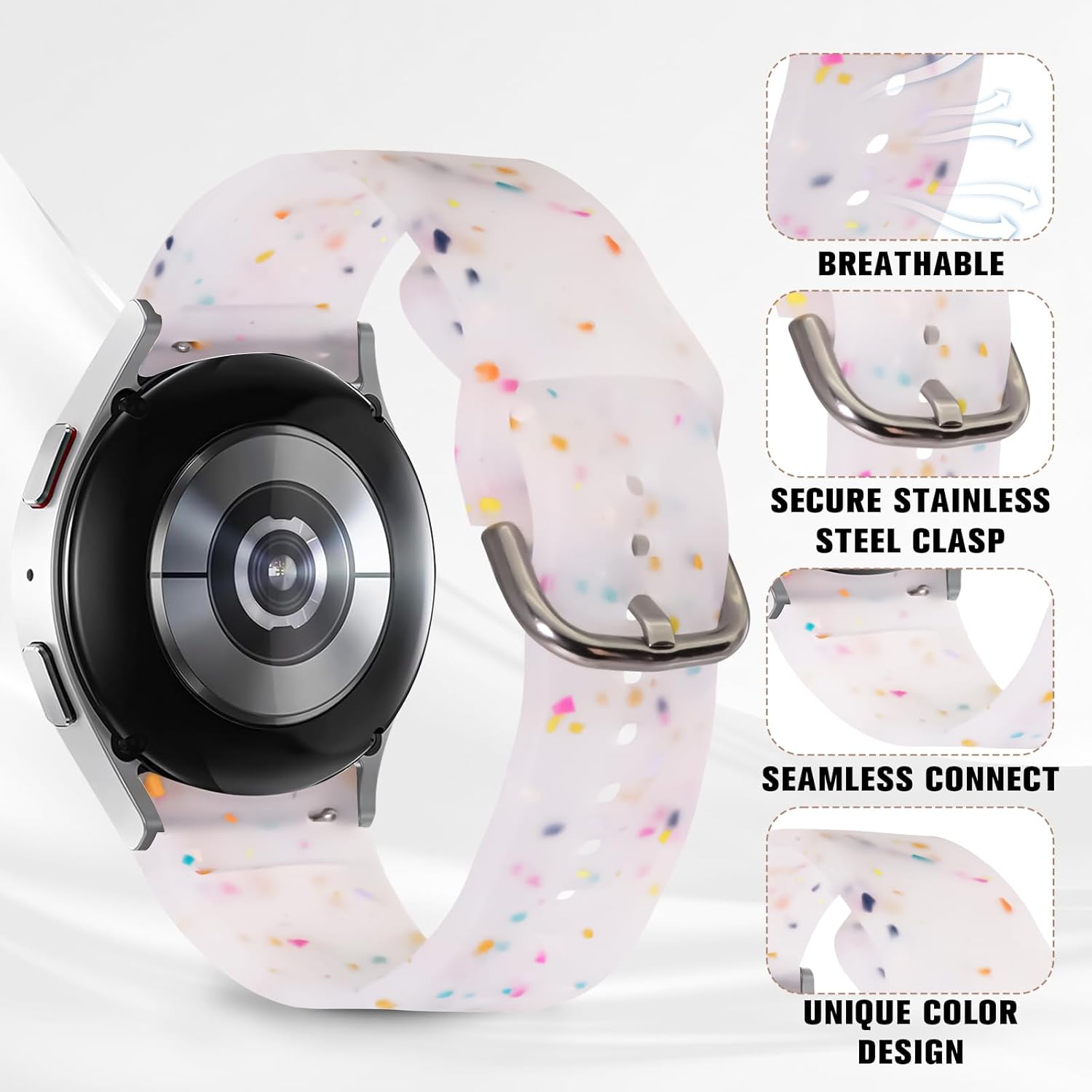 Customers love the watch band’s sprinkle of color and find it very soft and comfortable. The band fits well and is easy to change, with one customer noting its nice thick construction. However, several customers report that the color isn’t accurate.