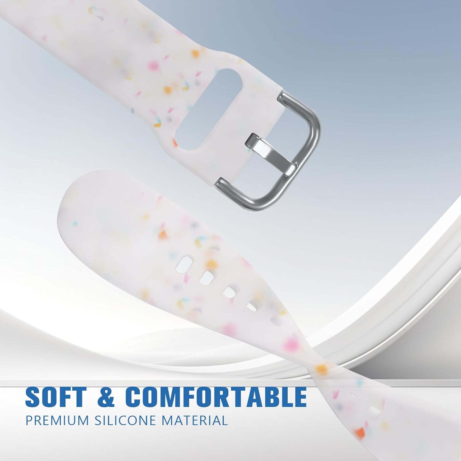 Customers love the watch band’s sprinkle of color and find it very soft and comfortable. The band fits well and is easy to change, with one customer noting its nice thick construction. However, several customers report that the color isn’t accurate.