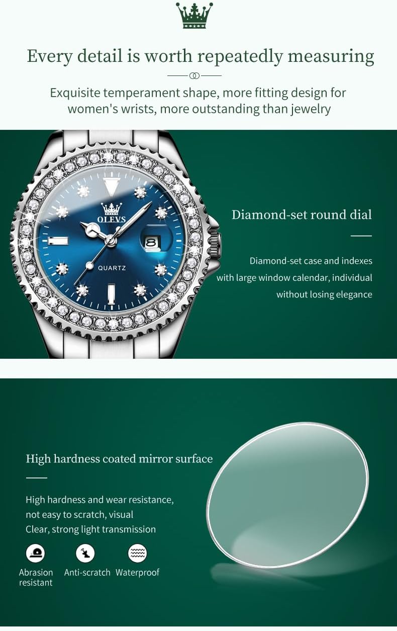 Be the first to review “OLEVS Ladies Watch Diamond Dress Quartz Analog Female Watches Stainless Steel Two Tone Waterproof Luminous Day Date for Womens Wrist Watch Gift”