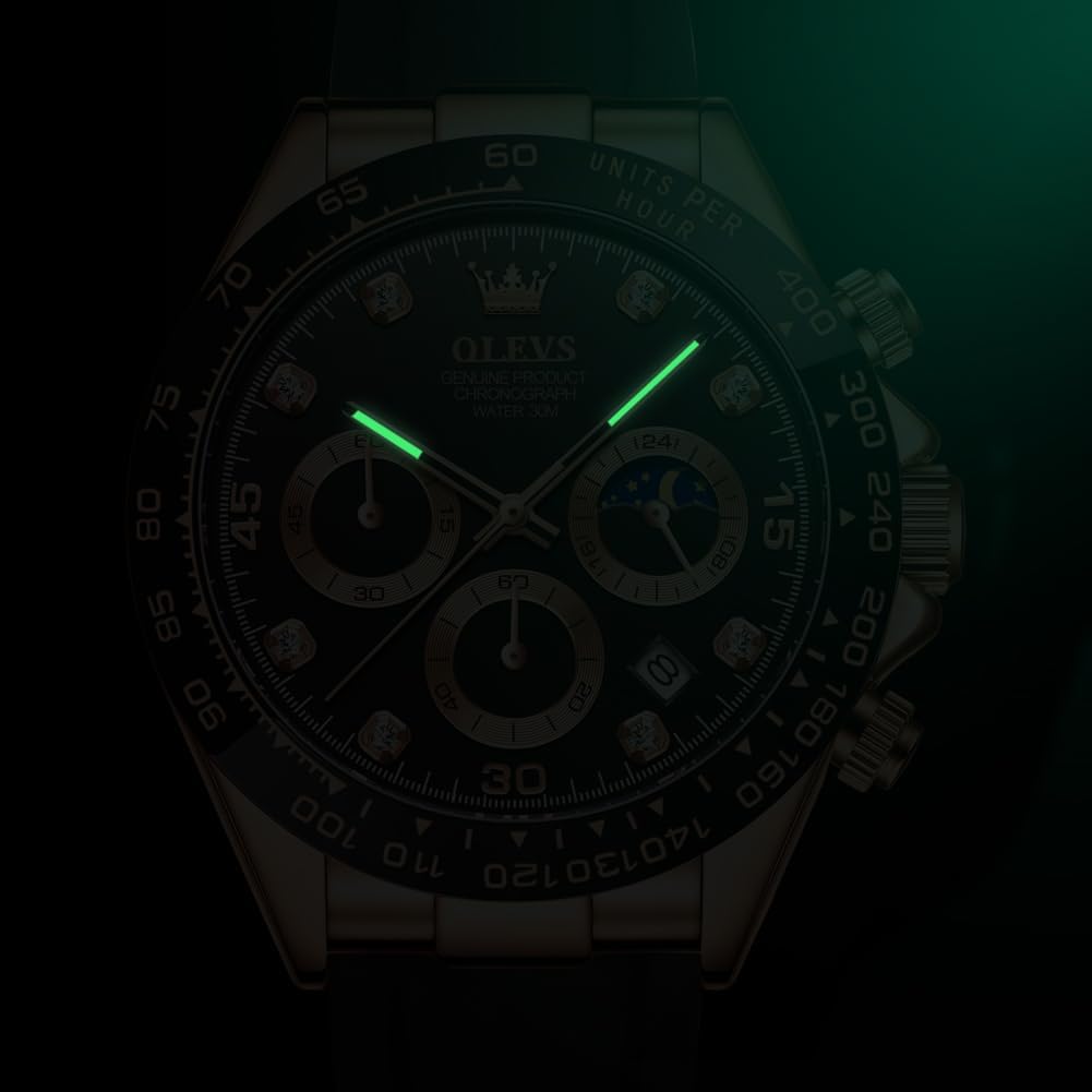 OLEVS Watches for Men Business Diamond Moon Phase Male Watch Chronograph Fashion Dress Waterproof Date Analog Waterproof Men Wrist Watch