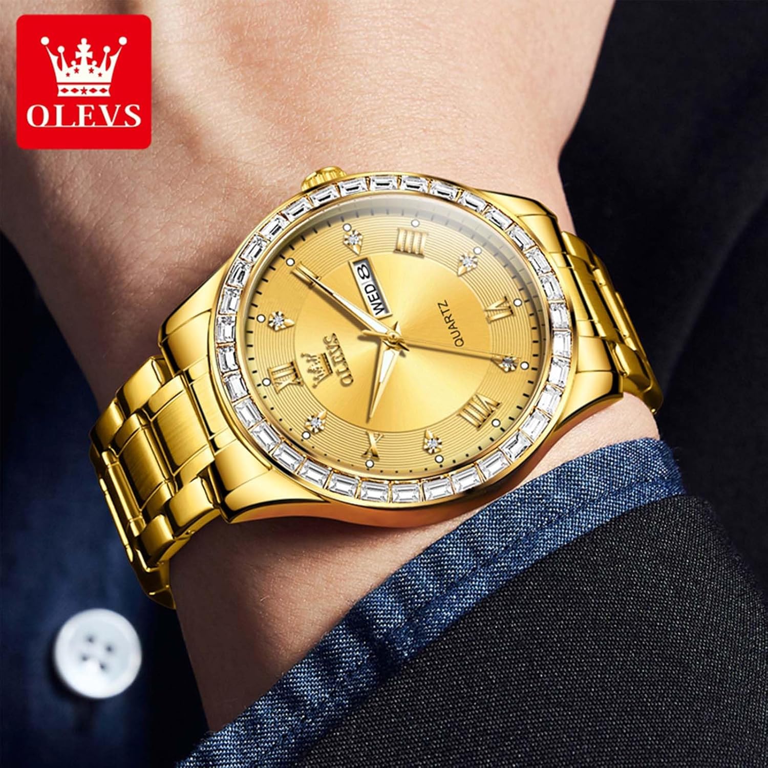 OLEVS Luxury Men Gold Watches, Diamond Wrist Watches Embrace the Sparkle of Modern Glamour.