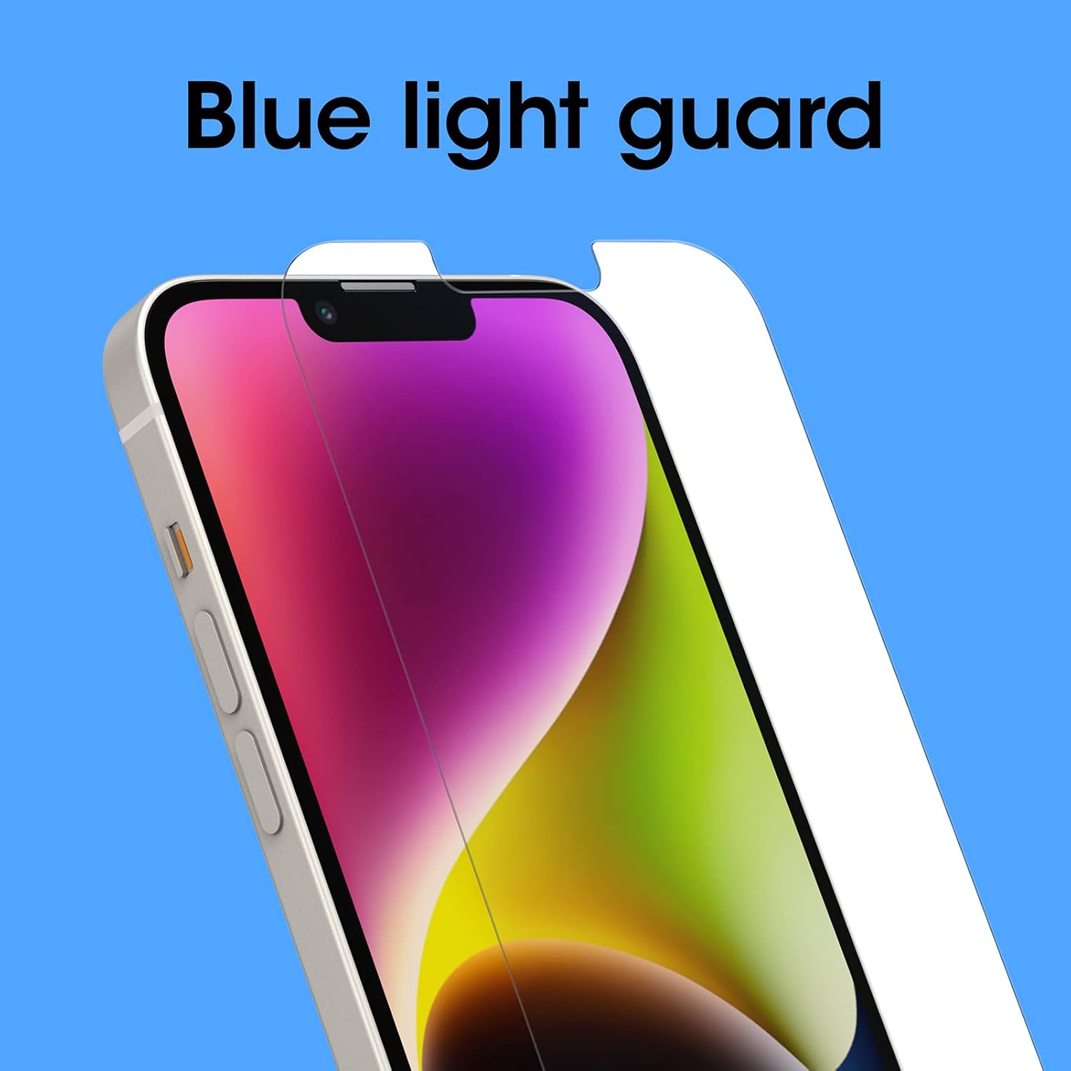 Amplify Glass iPhone 14 Plus blue light screen protector defends your display against scratches, scrapes and drops while shielding your eyes against harmful blue light waves. It keeps your display vivid and clear and guards the surface of your phone screen against invisible threats.