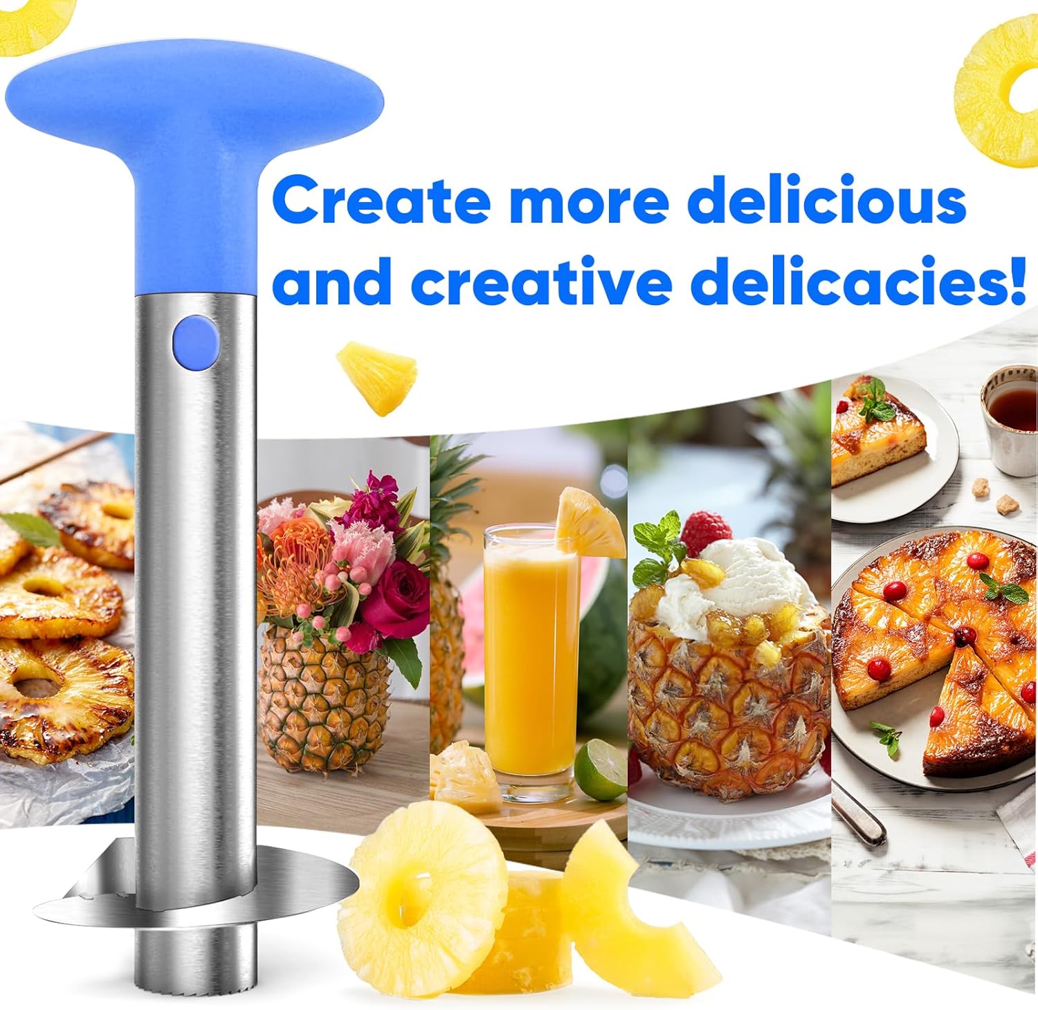 Pineapple Corer, [Upgraded, Reinforced, Thicker Blade] Newness Premium Pineapple Corer Remover, Stainless Steel Pineapple Core Tool for Home & Kitchen with Sharp Blade for Diced Fruit Ring (Blue)