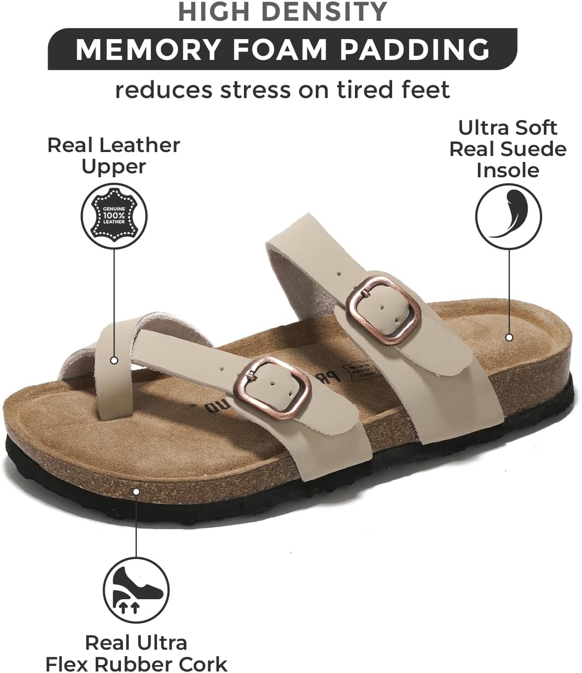 Project Cloud Genuine Leather Womens Sandals – Comfortable Cork Footbed Slides with Memory Foam Beach Essential Summer Sandals For Women 2025 (Lian)