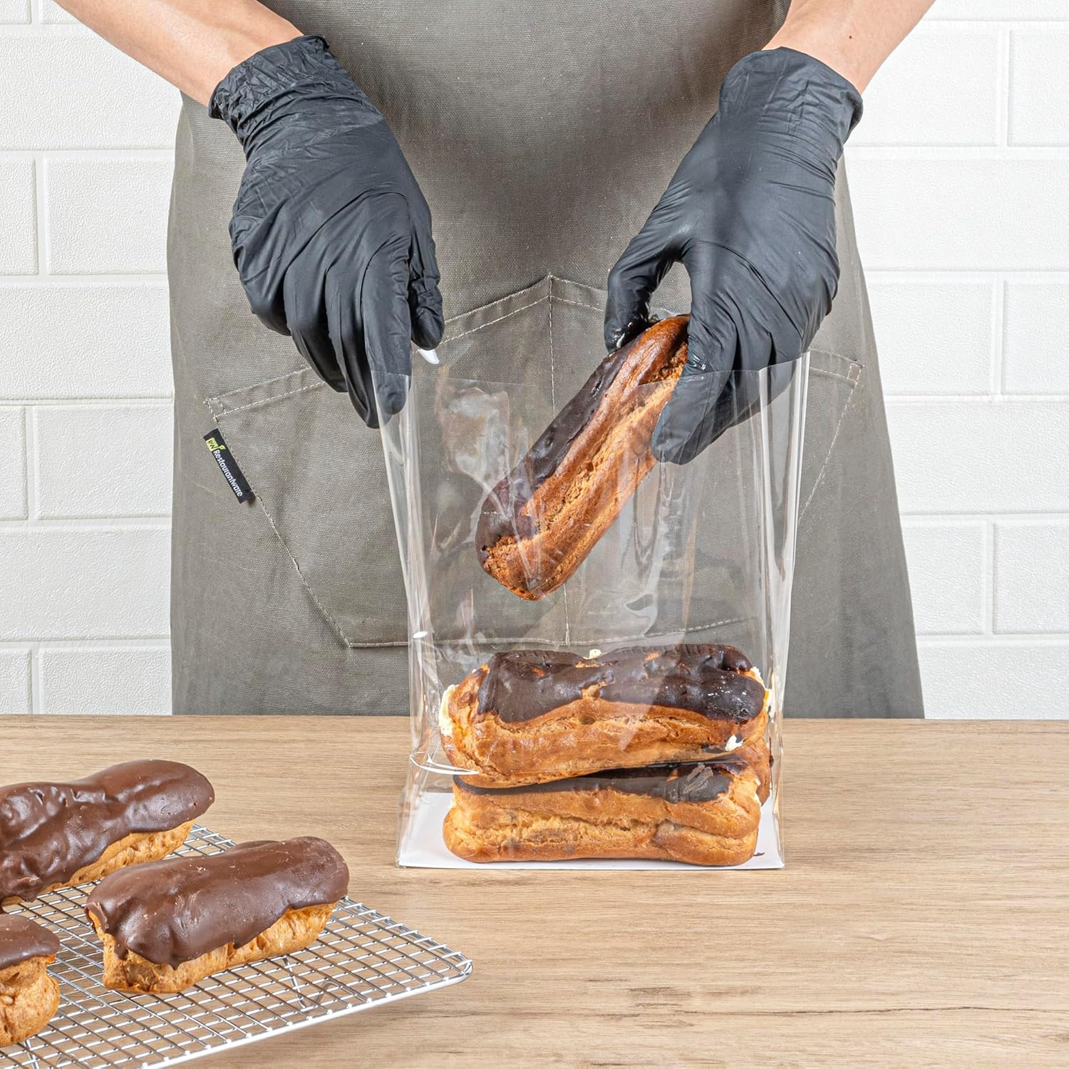 Perfectly package your bread rolls with our Bag Tek Clear Plastic Gusset Bags. With a crystal clear finish, these bread packaging bags showcase baked goods and confectionary to catch the eye of your customers. Made from premium plastic, these clear candy bags protect your delicious fare from dust and debris. These candy bags are heat-sealable to preserve the fresh taste of your mouthwatering treats. The included paper insert and flat, gusseted bottom of these heat seal cookie bags keep your wrapped food from slanting over while on your bakery’s or deli’s shelf. These sustainable clear plastic treat bags are disposable for simple and easy cleanup. To lock in the taste of cookies and muffins, seal these clear dessert bags with our impulse sealer (ASIN: B075S63C95 or B075S169JV). Measuring 7 inches long by 4 inches wide by 9 inches tall, these gusset plastic bags are sold in a 100 count box. Impulse sealer is available and sold separately.