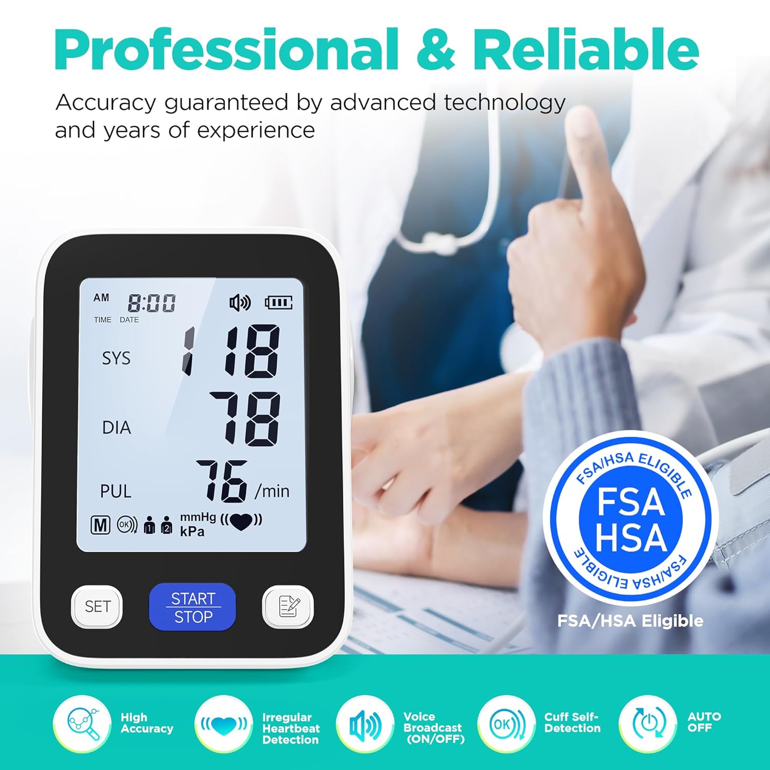 Runstar Upper Arm Blood Pressure Monitor with Wide Range Cuff (8.7” -16.5”) for Home Use FSA/HSA Eligible, Automatic Digital BP Machine with Storage Bag, 2×99 Reading Memory