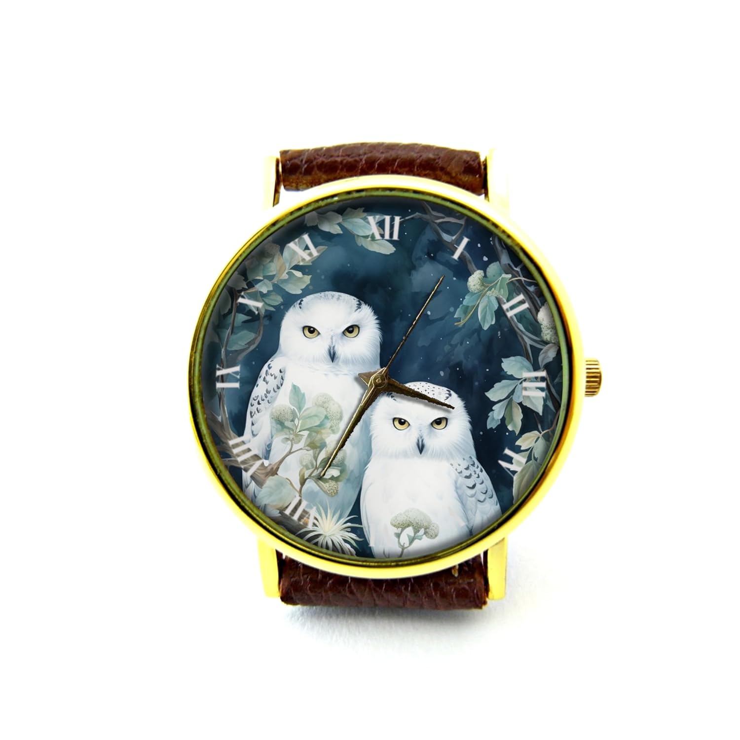 Snow White Owls Leather Watch, Cute Owl Ladies Watch, Owl Unisex Watch, Owl Jewelry P582