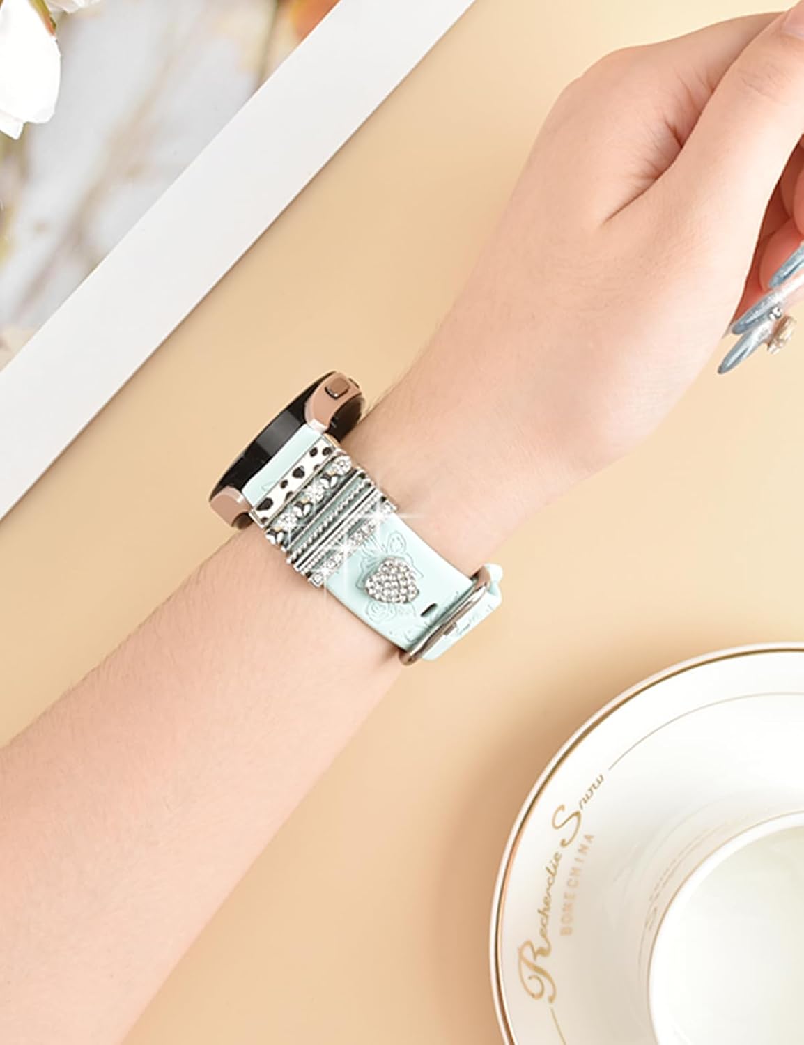 Customers appreciate the watch band’s charms, quality, and ease of use. They find it feminine and attractive with engraved butterflies and flowers. However, some have reported issues with the band falling off easily. There are mixed opinions on installation and fit.